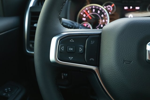 QUICK ORDER PACKAGE 27Z BIG HORN -inc: Engine: 5.7L V8 HEMI MDS VVT eTorque, Transmission: 8-Speed Automatic (8HP75) , TIRES: 275/55R20 OWL ALL SEASON -inc: Bridgestone Brand Tires, REAR WHEELHOUSE LINERS, NIGHT EDITION -inc: Tires: 275/55R20 OWL All Season, Bridgestone Brand Tires, Accent Color Premium Power Mirrors, Exterior Mirrors w/Supplemental Signals, Black Headlamp Bezels, Exterior Mirrors Courtesy Lamps, Grille Black Surround Black Mesh, Auto Power-Folding Mirrors, Wheels: 20" x 9.0" Aluminum Painted Clad, Auto Dim Exterior Driver Mirror, Black Exterior Truck Badging, Anti-Spin Differential Rear Axle, Accent Color Door Handles, Accent Color Tailgate Handle, Black Interior Accents, Dual Exhaust w/Black Tips, Body Color Front Bumper, Body Color Rear Bumper w/Step Pads, Black Tail Lamp Bezels, RAM Grille Badge - Black, Black Painted Exterior Mirrors Caps, MYFLEXCARE SERVICE PLAN, GVWR: 7,100 LBS, ENGINE: 5.7L V8 HEMI MDS VVT ETORQUE -inc: Active Noise Control System, Heavy Duty Engine Cooling, Passive Tuned Mass Damper, GVWR: 7,100 lbs, Dual Rear Exhaust w/Bright Tips, G/T Exhaust, 18" Aluminum Spare Wheel, CANYON LAKE, BLACK, DELUXE CLOTH BUCKET SEATS -inc: Power Adjust 8-Way Driver Seat, Rear 60/40 Folding Seat, Rear Center Armrest, Front Seat Back Map Pockets, Power 2-Way Driver Lumbar Adjust, BIG HORN LEVEL 1 EQUIPMENT GROUP -inc: SiriusXM Radio Service, Rear Window Defroster, Rear View Auto Dim Mirror, Power Adjustable Pedals, Leather Wrapped Steering Wheel, Rear Power Sliding Window, Rear Dome w/On/Off Switch Lamp, Glove Box Lamp, Auto Power-Folding Mirrors, Auto Dim Exterior Driver Mirror, Heated Front Seats, Heated Steering Wheel, Black Premium Power Mirrors, SiriusXM Satellite Radio, 400W Inverter, Exterior Mirrors w/Supplemental Signals, Steering Wheel Mounted Audio Controls, Exterior Mirrors Courtesy Lamps, Body Color Fender Flares, 115V Auxiliary Power Outlet, Universal Garage Door Opener, 2nd Row In Floor Storage Bins, Sun Visors w/Illuminated Vanity Mirrors.