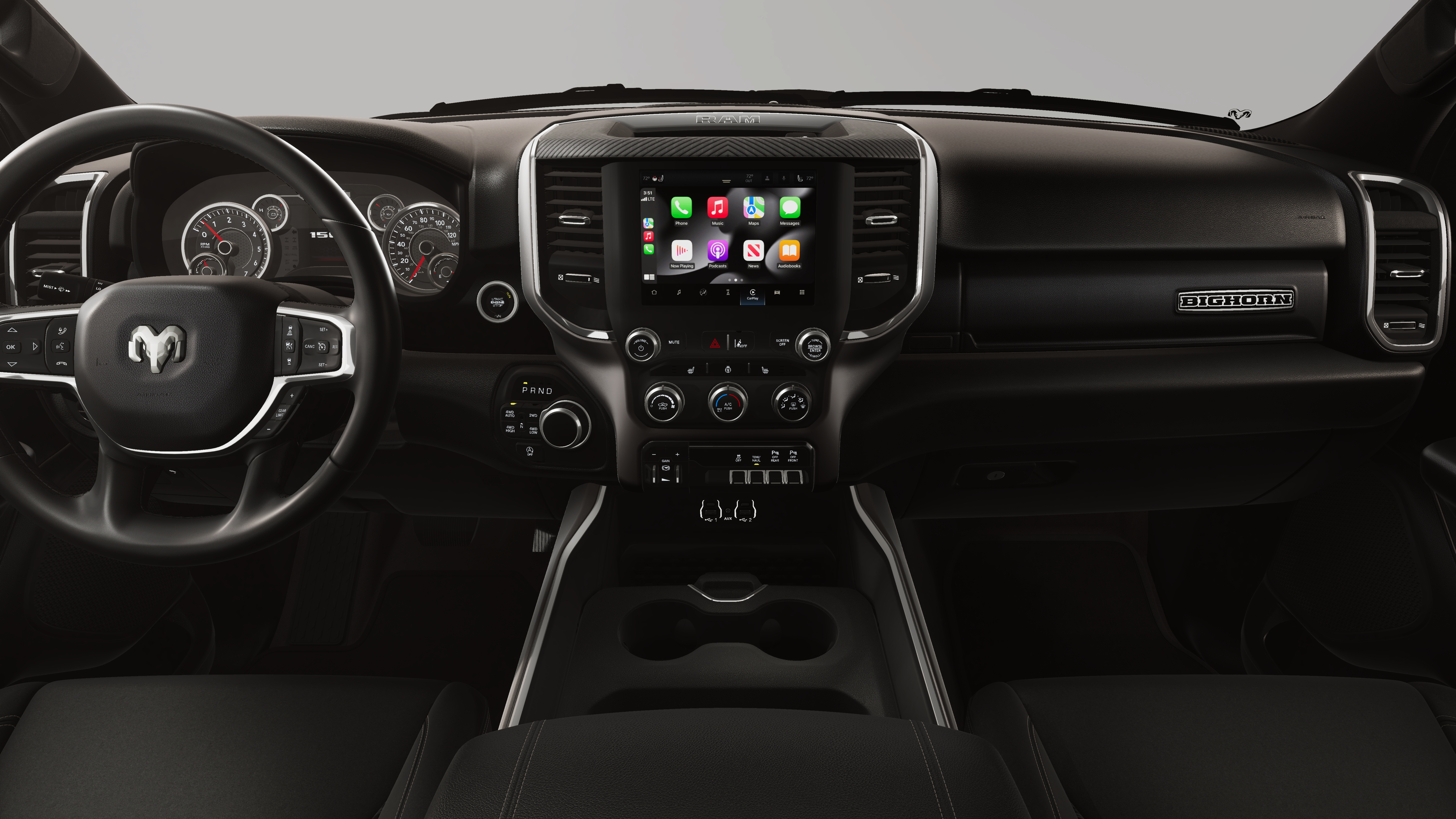 QUICK ORDER PACKAGE 27Z BIG HORN -inc: Engine: 5.7L V8 HEMI MDS VVT eTorque, Transmission: 8-Speed Automatic (8HP75) , TIRES: 275/55R20 OWL ALL SEASON -inc: Bridgestone Brand Tires, REAR WHEELHOUSE LINERS, NIGHT EDITION -inc: Tires: 275/55R20 OWL All Season, Bridgestone Brand Tires, Accent Color Premium Power Mirrors, Exterior Mirrors w/Supplemental Signals, Black Headlamp Bezels, Exterior Mirrors Courtesy Lamps, Grille Black Surround Black Mesh, Auto Power-Folding Mirrors, Wheels: 20" x 9.0" Aluminum Painted Clad, Auto Dim Exterior Driver Mirror, Black Exterior Truck Badging, Anti-Spin Differential Rear Axle, Accent Color Door Handles, Accent Color Tailgate Handle, Black Interior Accents, Dual Exhaust w/Black Tips, Body Color Front Bumper, Body Color Rear Bumper w/Step Pads, Black Tail Lamp Bezels, RAM Grille Badge - Black, Black Painted Exterior Mirrors Caps, MYFLEXCARE SERVICE PLAN, GVWR: 7,100 LBS, ENGINE: 5.7L V8 HEMI MDS VVT ETORQUE -inc: Active Noise Control System, Heavy Duty Engine Cooling, Passive Tuned Mass Damper, GVWR: 7,100 lbs, Dual Rear Exhaust w/Bright Tips, G/T Exhaust, 18" Aluminum Spare Wheel, DIAMOND BLACK CRYSTAL PEARLCOAT, BLACK, DELUXE CLOTH BUCKET SEATS -inc: Power Adjust 8-Way Driver Seat, Rear 60/40 Folding Seat, Rear Center Armrest, Front Seat Back Map Pockets, Power 2-Way Driver Lumbar Adjust, BIG HORN LEVEL 1 EQUIPMENT GROUP -inc: SiriusXM Radio Service, Rear Window Defroster, Rear View Auto Dim Mirror, Power Adjustable Pedals, Leather Wrapped Steering Wheel, Rear Power Sliding Window, Rear Dome w/On/Off Switch Lamp, Glove Box Lamp, Auto Power-Folding Mirrors, Auto Dim Exterior Driver Mirror, Heated Front Seats, Heated Steering Wheel, Black Premium Power Mirrors, SiriusXM Satellite Radio, 400W Inverter, Exterior Mirrors w/Supplemental Signals, Steering Wheel Mounted Audio Controls, Exterior Mirrors Courtesy Lamps, Body Color Fender Flares, 115V Auxiliary Power Outlet, Universal Garage Door Opener, 2nd Row In Floor Storage Bins, Sun Visors w/Illuminated Vanity Mirrors.