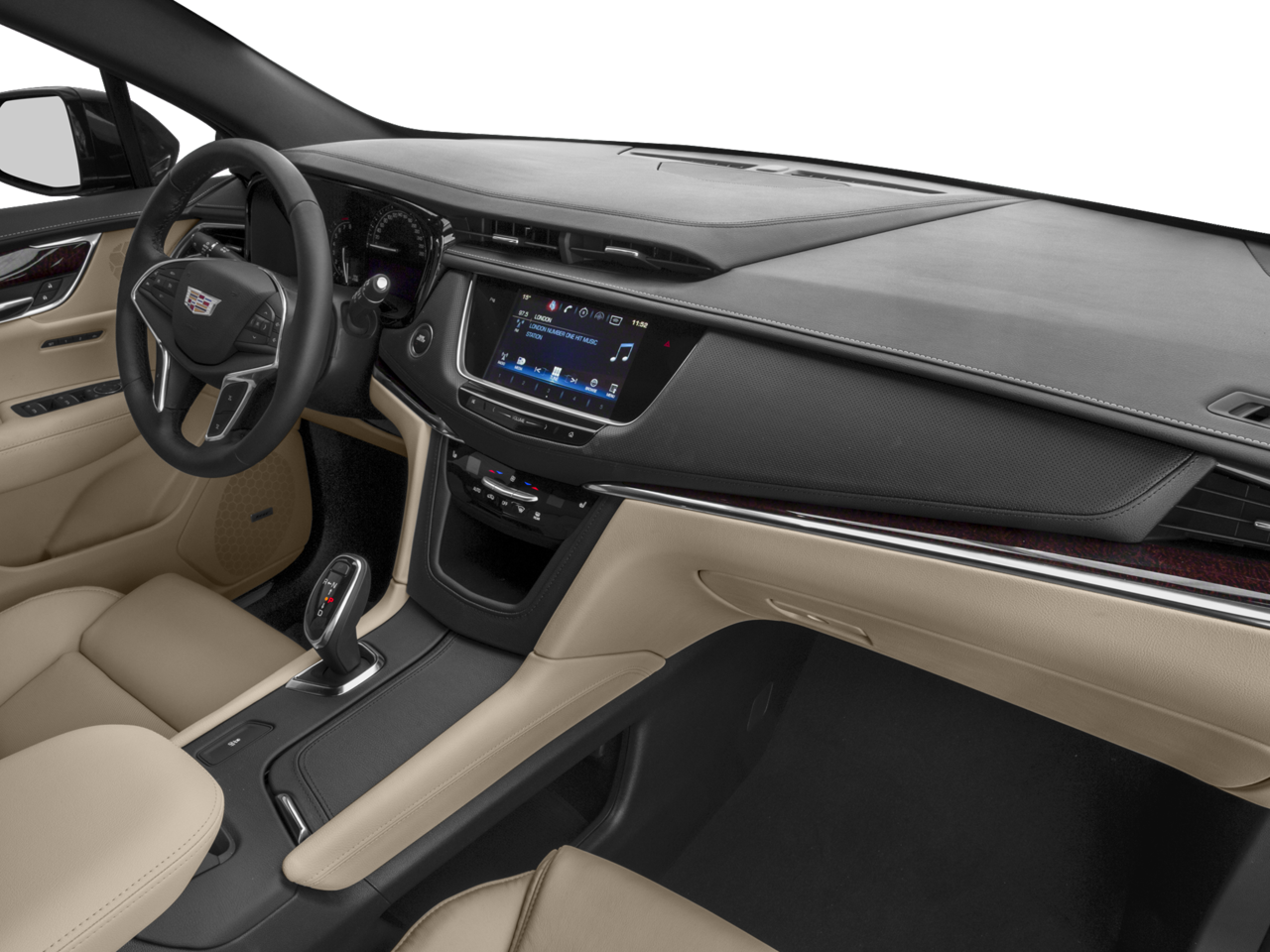 TIRE, COMPACT SPARE includes lateral cargo net, SEATS, FRONT BUCKET INCLUDES 8-WAY POWER DRIVER SEAT ADJUSTER (STD), SAHARA BEIGE, LEATHER SEATING SURFACES WITH MINI-PERFORATED INSERTS with Jet Black accents (With natural Sapele high-gloss wood trim.), PREMIUM LUXURY PREFERRED EQUIPMENT GROUP Includes Standard Equipment, ENGINE, 3.6L V6, DI, VVT, WITH AUTOMATIC STOP/START (310 hp [231 kW] @ 6600 rpm, 271 lb-ft of torque [366 N-m] @ 5000 rpm) (STD), CARGO NET, LATERAL MESH, CADILLAC USER EXPERIENCE WITH EMBEDDED NAVIGATION, AM/FM STEREO with 8" diagonal color information display, four USB ports, two auxiliary power outlets, auxiliary input jack, Natural Voice Recognition and Phone Integration for Apple CarPlay and Android Auto capability for compatible phone (STD), Wireless Charging (The system wirelessly charges one PMA- or Qi-compatible mobile device. To check for phone or other device compatibility, see my.cadillac.com/learn.), Wipers, front intermittent, Rainsense, with moisture detection, Wiper, rear intermittent with washer.